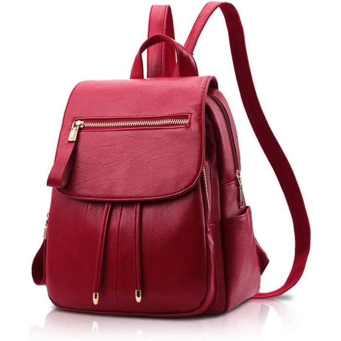 Sac à dos - femme - rouge bourgogne - imitation cuir - antivol - dimensions 24x13x30cm