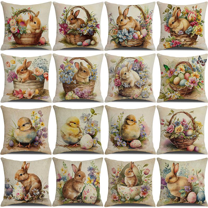 Neuer Oster-Kissenbezug Frühling Beliebt Retro Hase Dekokissen Sofa Kissenbezug
