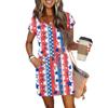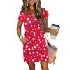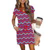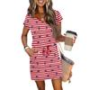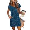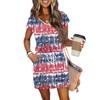 Damen Casual Sommerkleider Patchwork V-Ausschnitt T-Shirt Casual Kurzarm Kordelzug Kleider