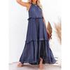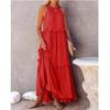 Mode Elegant Ärmellos Rüschen Maxi Langes Kleid Neu O-Ausschnitt Locker Lässig Einfach Sommer A-Linie Strandkleider Damen Plissiert Einfarbig Kleidung