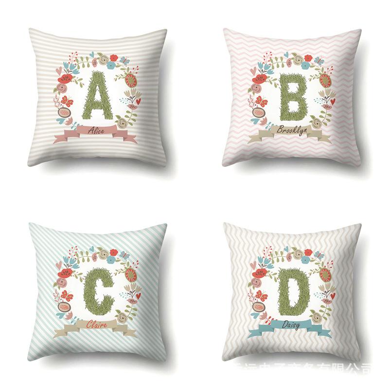 Polyester Pillowcase Car Decoration Home 26 English Letters Plant Wavy Print Pillowcase