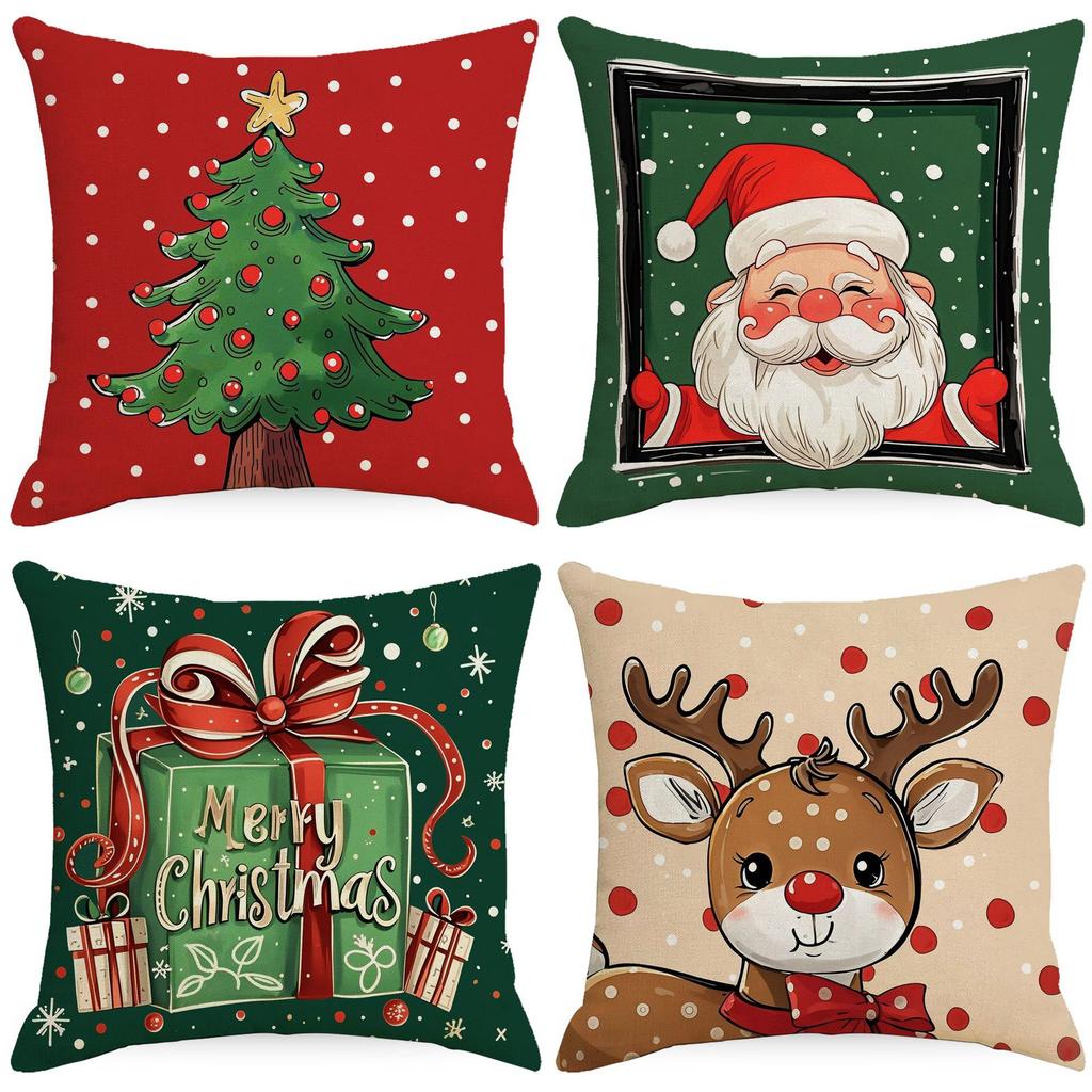 Neuer Weihnachts-Kissenbezug Niedlicher Weihnachtsmann Weihnachtsbaum-Druck Heim-Kissenbezug