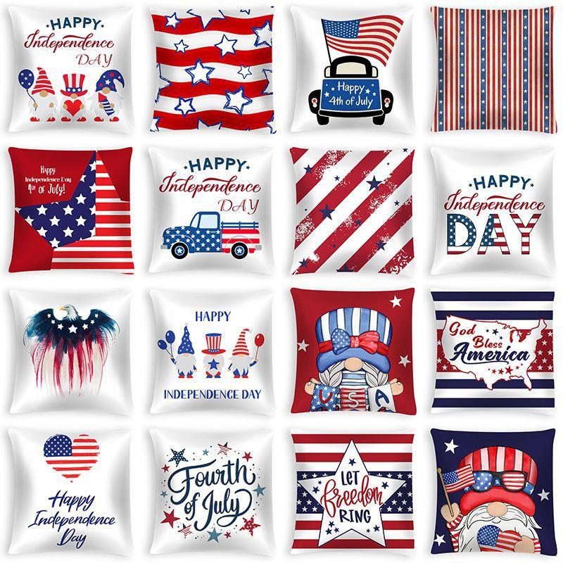 New American Independence Day Pillowcase, American Peach Skin Velvet Printed Cushion Cover, Sofa Pillow Cover