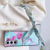 Cute Blooming PU Leather Cover with Scarf Handbag Style Chain Wrist Strap For Samsung Galaxy Z Fold 6 5 4 3 5G Hard Phone Case