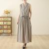 Sommer neues Baumwoll- und Leinen literarisches lockeres gestreiftes V-Ausschnitt ärmelloses Westenkleid Damen