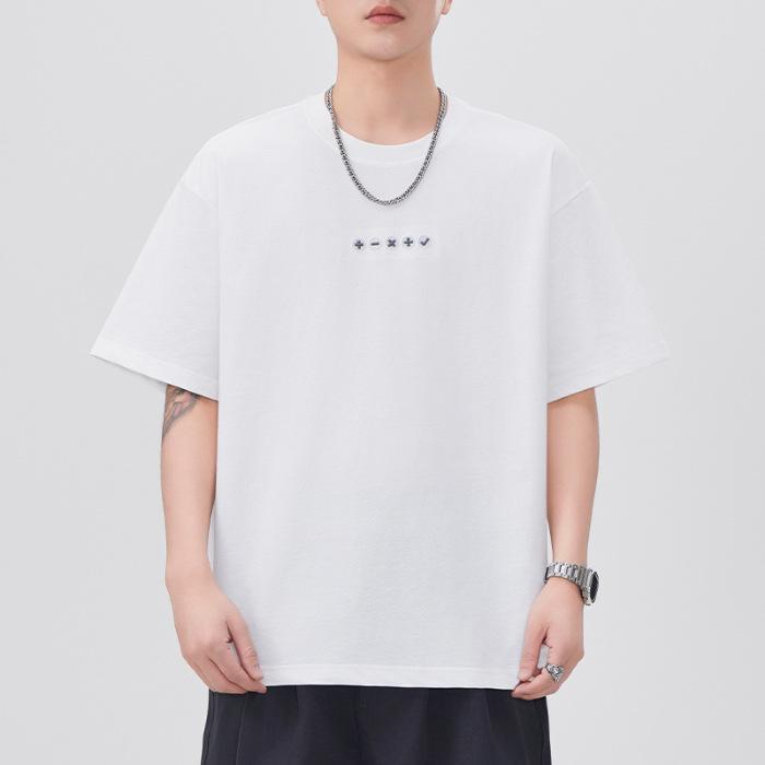 New Summer Short-sleeved T-shirt for Men's Embroidered Loose Five-quarter Sleeve T-shirt Japanese Retro Casual