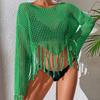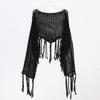 Sommer Pullover Kurz Aushöhlen Strickwaren Quaste Langarm Locker Cover Up Layering Lässig Schlankmachendes Oberteil Damen