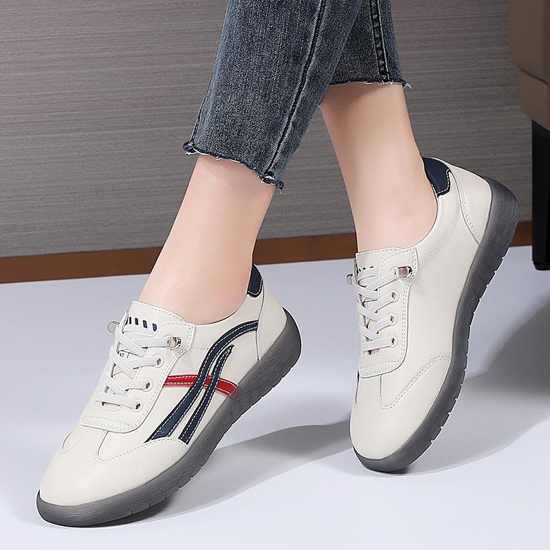 Neue Echte Leder Weiße Schuhe für Damen Leichte Lässige Flache Schuhe Ins Modische und Vielseitige Jelly-Sohlen Schuhe
