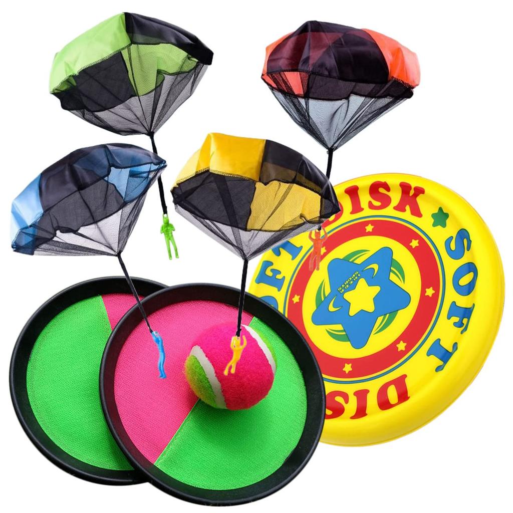 In der kommenden Saison, in der man Outdoor-Aktivitäten wie Camping, Grillen und Picknicks genießt, warum erfrischen Sie sich nicht mit einem abwechslungsreichen Set, das sowohl von Kindern als auch von Erwachsenen genossen werden kann? Dieses super günstige Set enthält einen beliebten Fallschirm, der drinnen benutzt werden kann, ein hochwertiges Flugball-Set mit Bällen und einen Frisbee, der perfekt zur Entwicklung der motorischen Fähigkeiten von Kleinkindern ist und auch als Spielzeug für Ihren geliebten Hund verwendet werden kann.