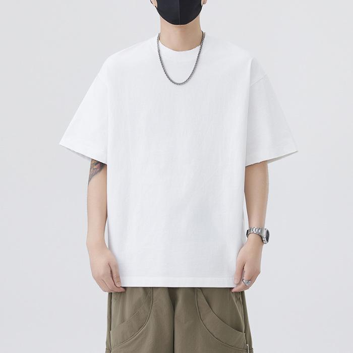 New Summer Heavyweight 320g Pure Cotton Cool T-shirt Men's White Short-sleeved Loose Top Men