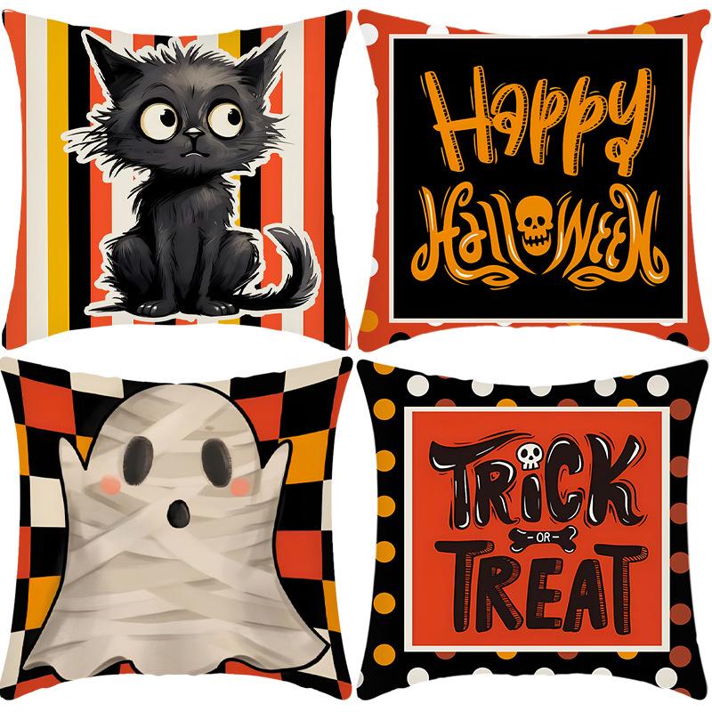 Heißes Halloween Geist Schwarze Katze Kissenbezug Party Heimdeko Bedruckter Kissenbezug Festliche Atmosphäre Sofakissenbezug