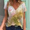 Damen Sommer Damen V-Ausschnitt Blume Bunt Digital bedruckt Lässiges T-Shirt für Damen Shirt