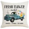 Frühlingsblumen Leinen Kissenbezug Blauer LKW Digitaldruck Kissen