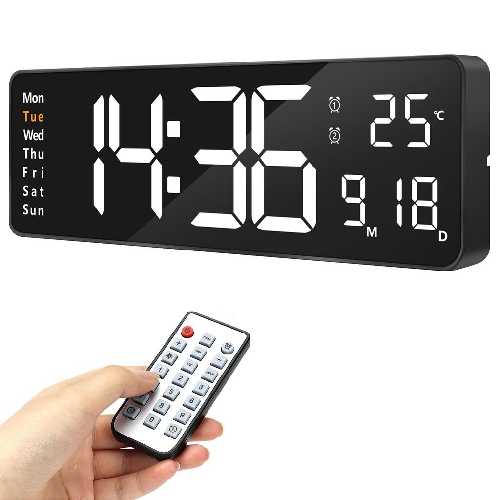 Digitale Uhr Wanduhr Groß 16 Zoll LED Uhr Wecker Große Ziffern Dimmbares Display Fernbedienung Energiesparend USB-Anschluss Wohnzimmer
