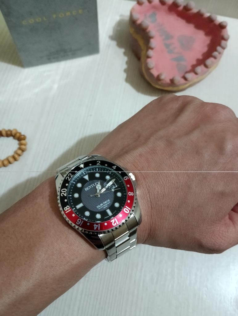 Sehr schöne und hochwertige Uhr mit Solarzelle. 40 mm passen genau für mein 18 mm Handgelenk.