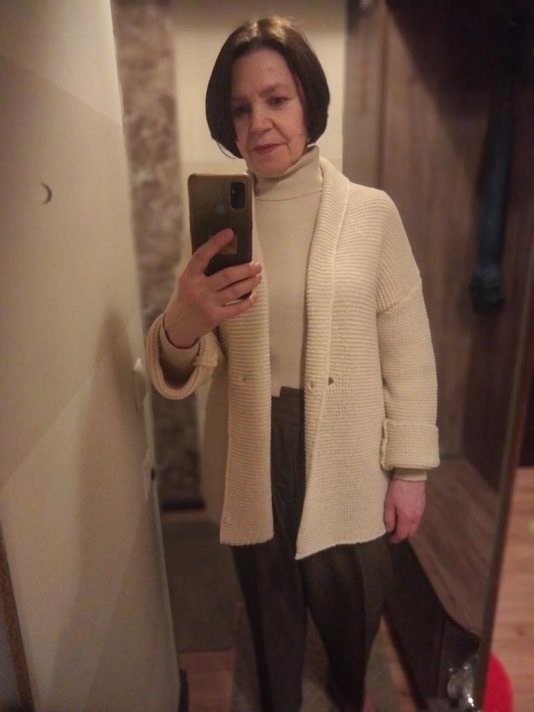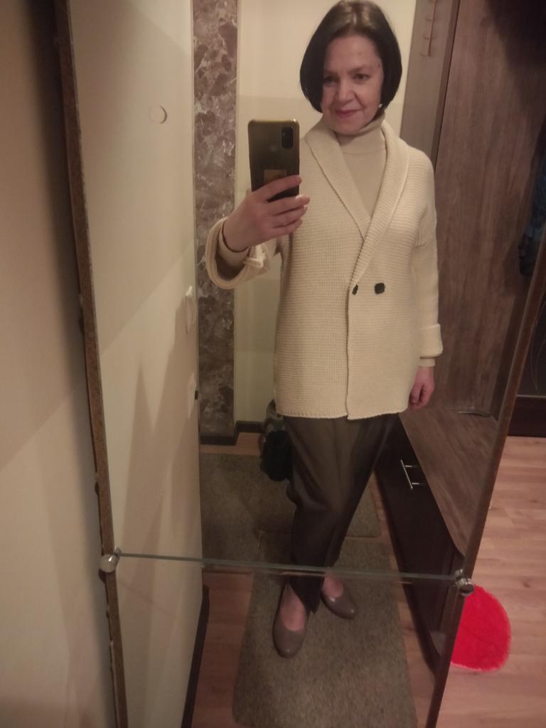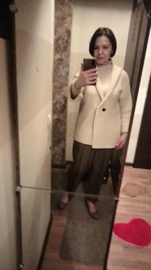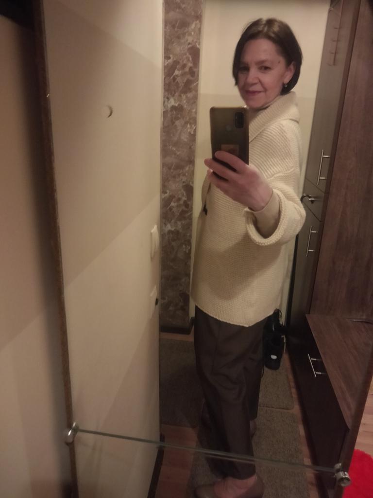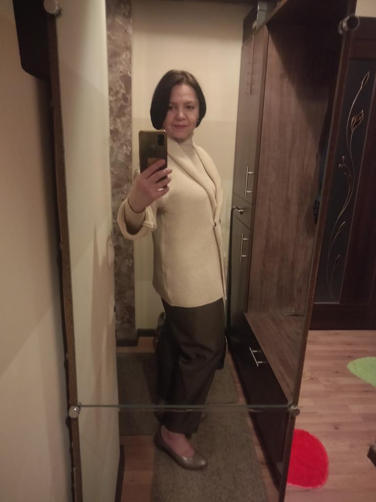 Der Pullover hat überrascht, weil er sehr kuschelig und ziemlich leicht ist, obwohl die Strickart recht dick ist. Er umhüllt die Figur förmlich. Auf den Fotos des Verkäufers sieht er wie eine Strickjacke aus, dichter und fester. Schnitt, Farbe, Größe – alles stimmt mit den Fotos und der Größentabelle des Verkäufers überein. Mit der Qualität des Produkts bin ich zufrieden. Fühlt sich nicht synthetisch an, wie Naturmaterial. Meine Maße: Schultern 39 cm, Brust 88 cm, Taille 74 cm, Hüften 100 cm, Ärmel 58 cm, Größe 159 cm. Danke an den Verkäufer ❤️ und danke an Joom ❤️