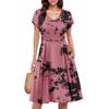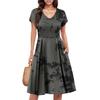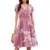 Damen Sommerkleid Kurzarm V-Ausschnitt Kurze Kleider Mode Lässig Fließendes A-Linien Swing-Sommerkleid mit Tasche