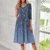 Lässiges, modisches Midikleid mit V-Ausschnitt und Dreiviertelärmeln für Damen