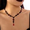 Alloy Gothic Necklace with Red Zircon and Black Tassels Trendy Night Club Party Jewelry for Fashion Enthusiasts