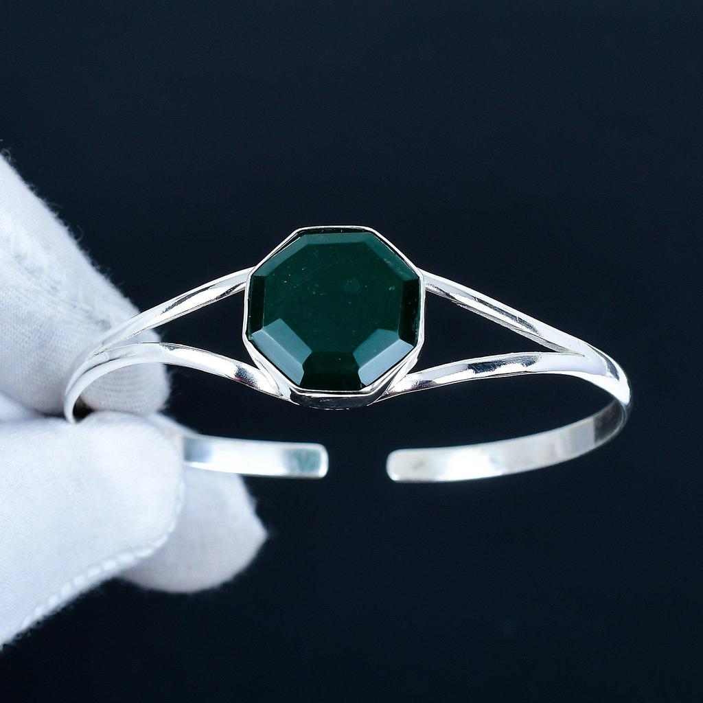 Grüner Turmalin Sechseck Edelstein Handgefertigter Armreif 925 Sterling Silber Armreif, Turmalin Armband für Ehefrau, Unisex Armreif zum Verschenken