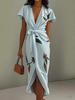 Entwurf: Dieses elegante weiße Kleid verfügt über einen schmeichelhaften V-Ausschnitt und kurze Ärmel, perfekt für einen schicken und bequemen Look.