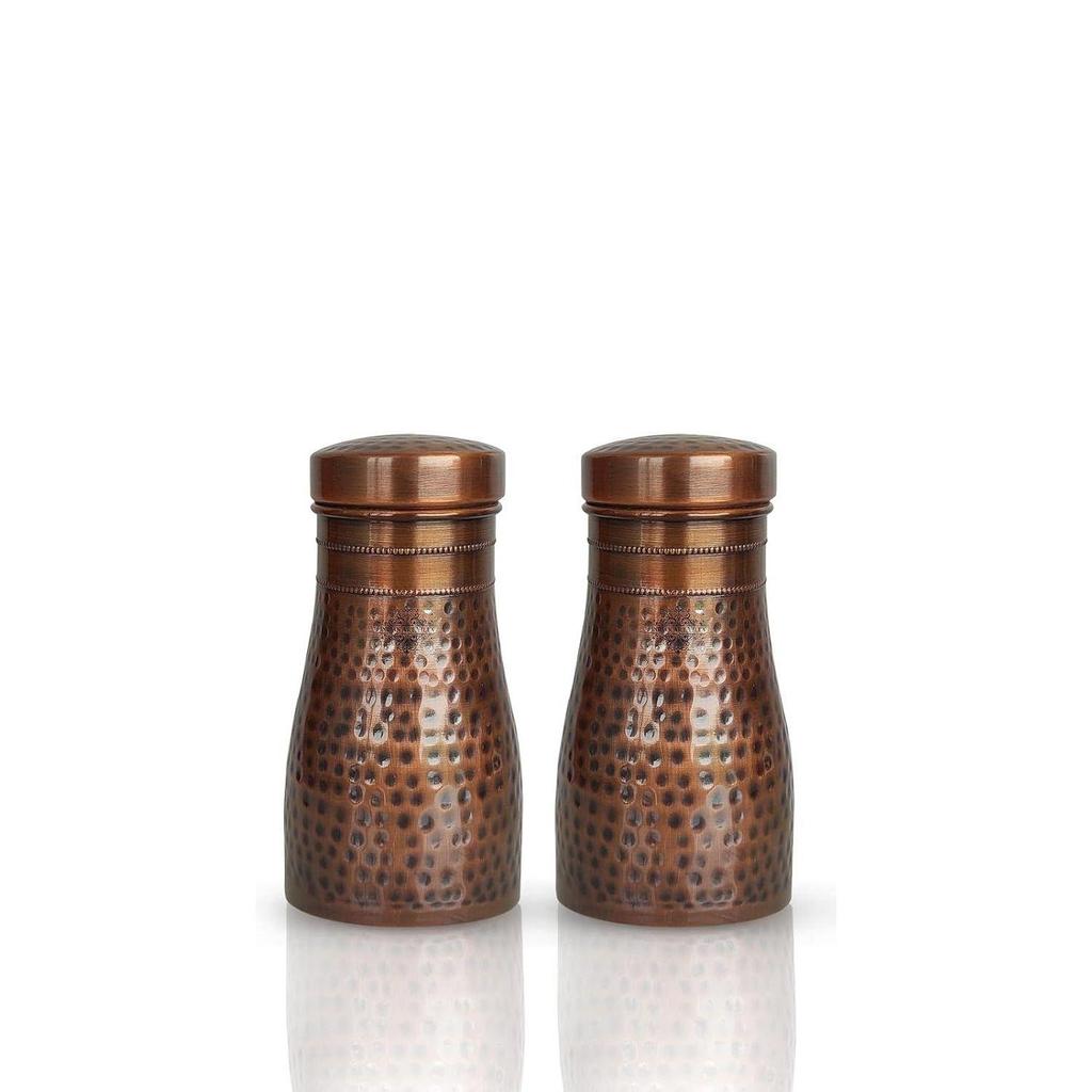 Reine Kupfer Schlafzimmer Wasserflasche mit eingebautem Glas, gehämmertes antikes Design Volumen 900 ml (2er-Pack)