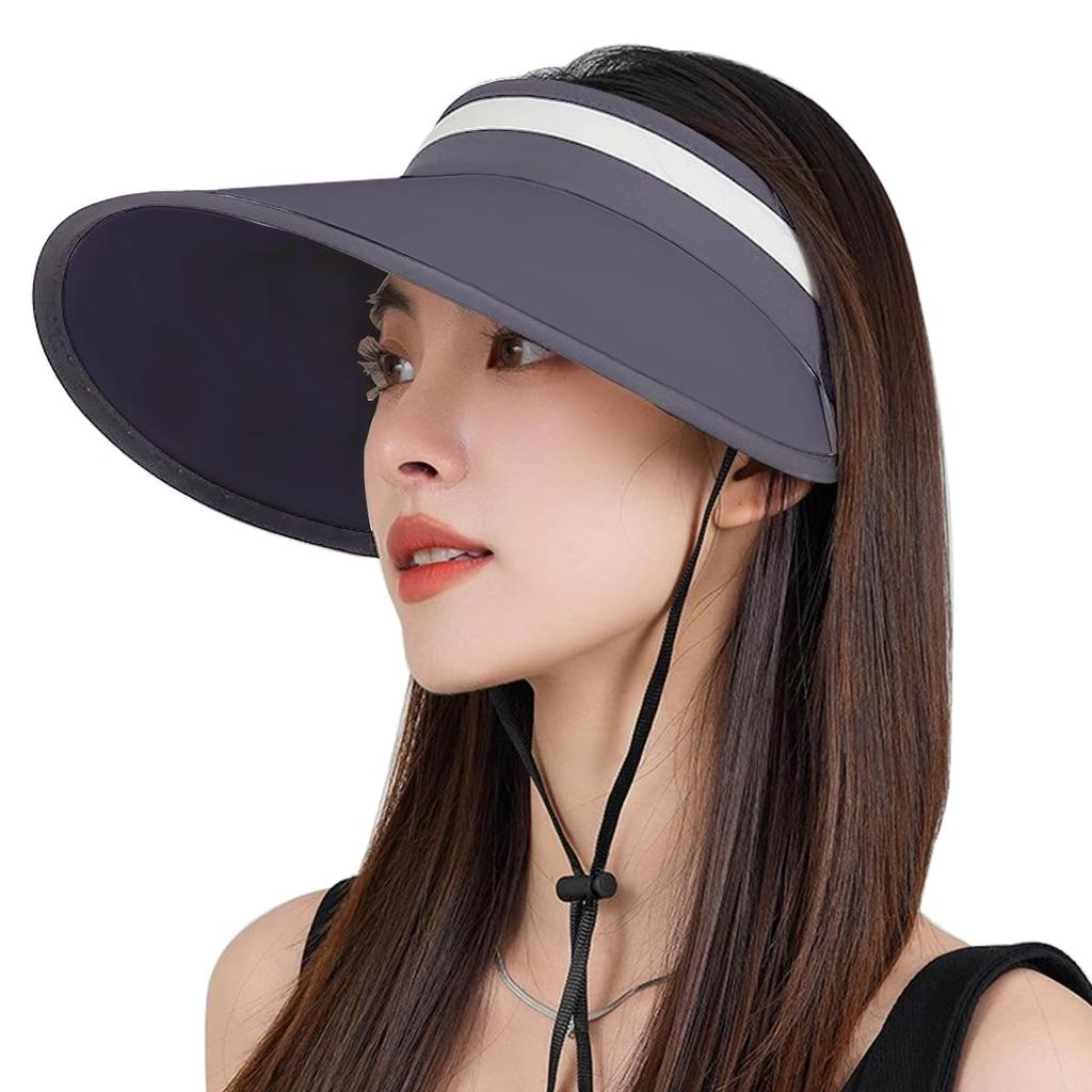 4. Ein Damen-Sonnenvisier, das unerlässlich ist, um UV-Strahlen zu blockieren.. Beide Seiten bestehen aus Polyesterfasergewebe mit kühlendem Effekt, sodass Sie auch an heißen Sommertagen ein kühles Gefühl genießen können.. [UPF50+ Verarbeitung] Die 13 cm breite Krempe bedeckt das gesamte Gesicht, und die Hartplatte im Inneren der Krempe ist mit einem UV-Schutzeffekt beschichtet, mit dem höchsten UV-Schutzfaktor von UPF50+, und die breite Krempe blockiert etwa 99 % der UV-Strahlen! [Schweißband] Der Innenteil besteht aus Schwammmaterial mit ausgezeichneter Schweißabsorption, was ihn weich und angenehm zu tragen macht.. Die Netzstruktur bietet hervorragende Atmungsaktivität und schnelles Trocknen und sorgt für einen frischen Kopf.. Der Sonnenschirm ist nützlich, wenn Sie Ihre Haare hochbinden, da es schwierig ist, dass Ihre Haare durcheinander geraten.