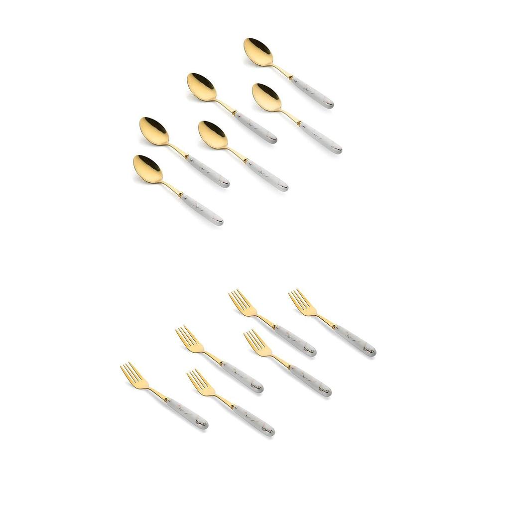 Produktdetails: Packung : 12|Großes Löffel- und Gabelset|Goldener Korpus & Keramikgriff mit schönem Design