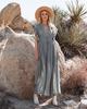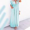 Mode Kurzarm Tiefer V-Ausschnitt Locker Maxi Langes Kleid Damen Einfarbig Elegant Strand Sonnenschutz Party Hemdkleid Schnürung Lässig Schlichte Kleidung