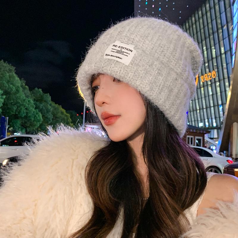 Herbst- und Wintermützen Damenmode Etikettierung Strickwollmützen Winter warm großer Kopfumfang Ohrenmützen