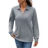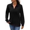 Damenmode Lässig Einfarbig Revers Locker Langarm T-Shirt Top