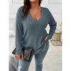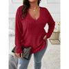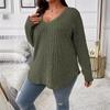Damenbluse Neu Einfarbig Große Größe V-Ausschnitt Langärmlig Rippstrick Gebürstetes T-Shirt Locker Lässig Pullover