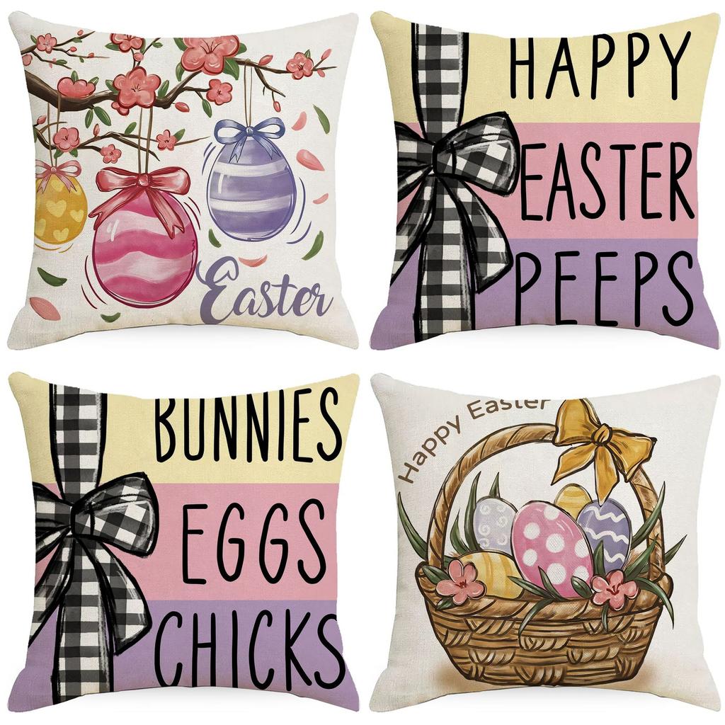 Oster Kissenbezug Leinen Sofakissen Wohnzimmer Dekoration Bedrucktes Kaninchen Osterei Kissen