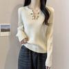 Herbst- und Winterpullover im koreanischen Stil mit V-Ausschnitt, lockerer Pullover für Damen, passend zum Unterhemd