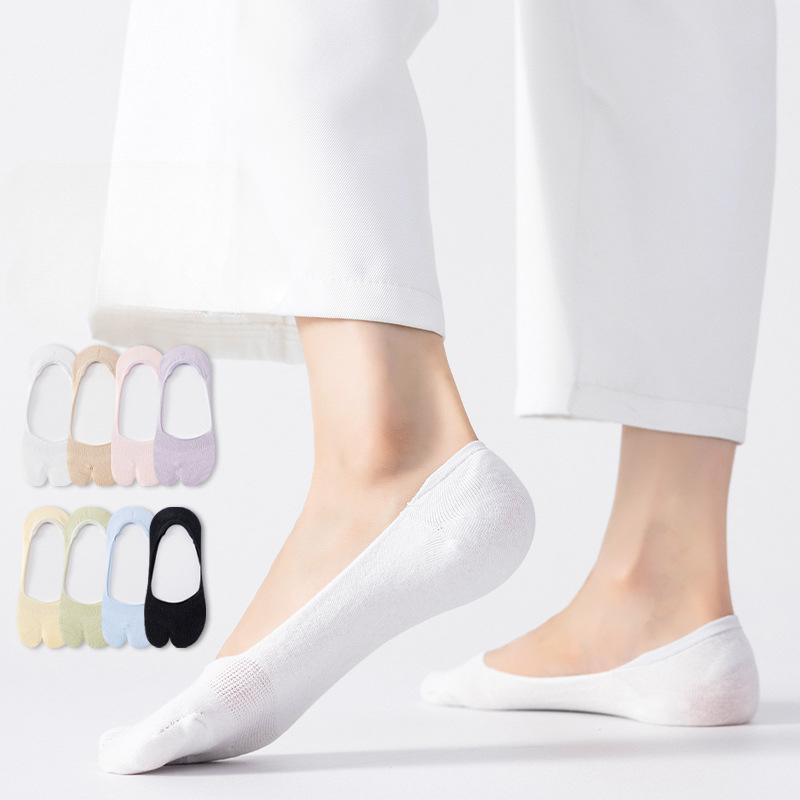 Zweizehige Bootssocken für Damen, dünn, nahtlos, schweißabsorbierend, zehentrennend, unsichtbar, flach, rutschfest und mit Fersenhaftung
