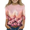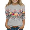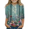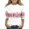 Bedruckte Oberteile für junge Mädchen von 5–16 Jahren, Rundhalsausschnitt, 3/4-Ärmel, T-Shirts, trendige Oberteile, Outfit-T-Shirts