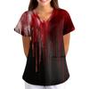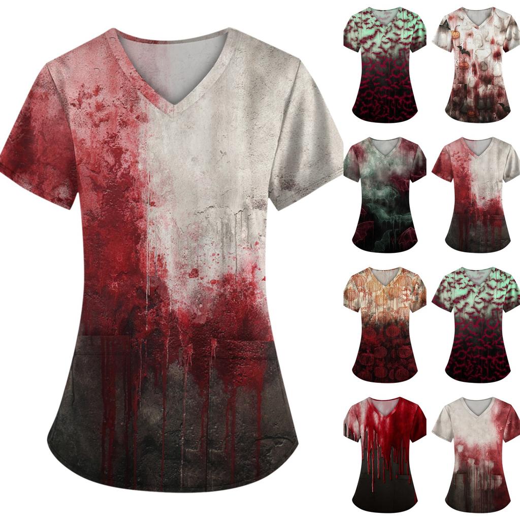 Damen Halloween Bedruckt Locker V-Ausschnitt Tasche Kurzarm Uniform Uniform