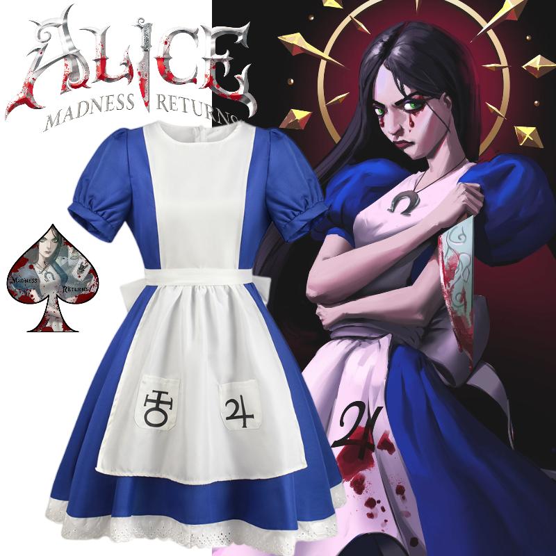 Madness Returns Alice Cosplay Costume Girl Game Dress Party Outfit Halloween