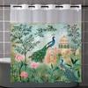 Duschvorhang mit No-Hook-Pfau-Muster, mit einknöpfbarem Stofffutter, transparentem Oberfenster, wasserdichter Doppelschicht-Badewannenvorhang