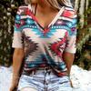 Ethnic print casual V-neck short-sleeved summer women's oversized clothing ladies T-shirt