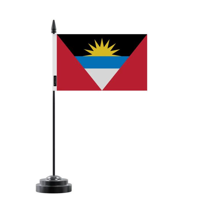 Tischflagge von Antigua und Barbuda – 14 x 21 cm – Polyester – Schwarzer Kunststoffsockel – Pixelforma