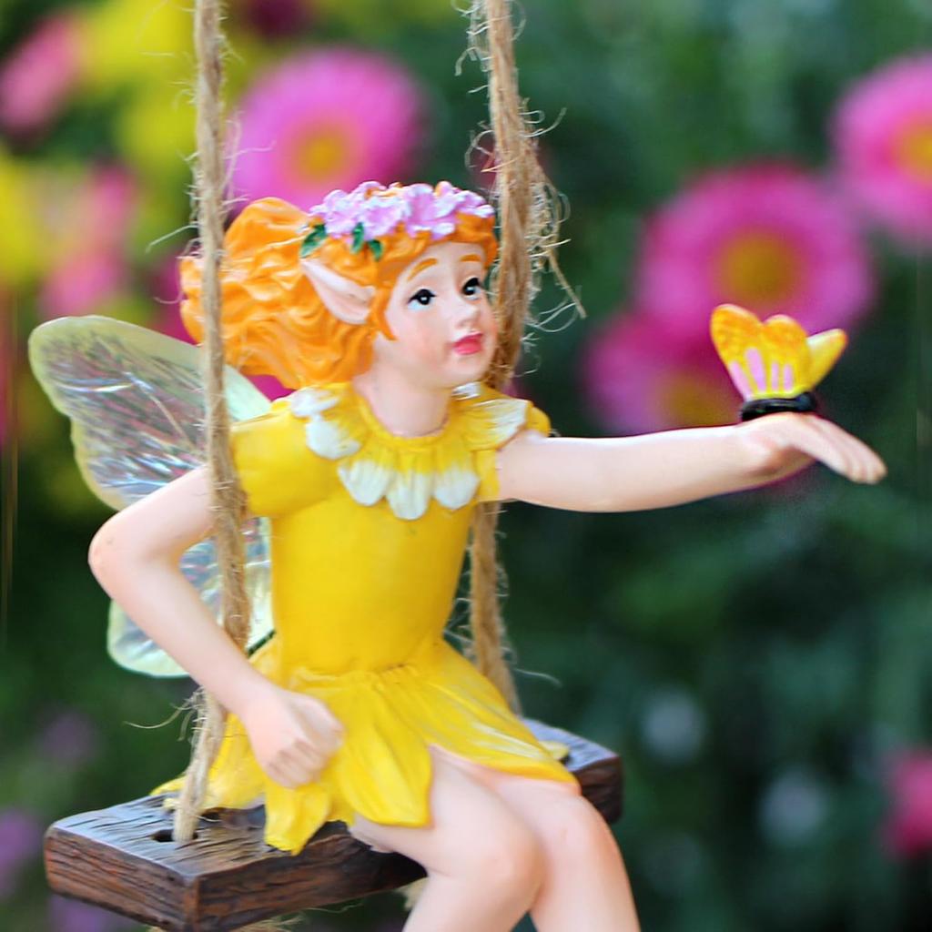 Fairy on a Swing Hanging Statue, Resin Flower Pendant Outdoor Decor Statue, Swing Fairy Ornaments for Yard Lawn Patio Balcony