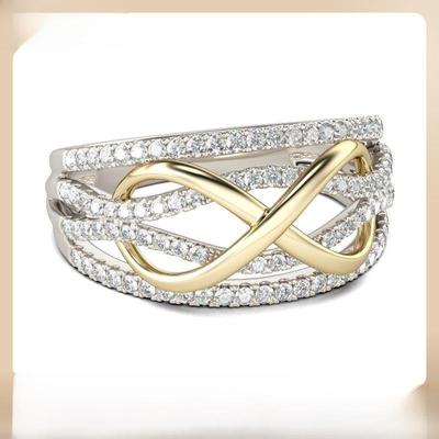 Fashion 14k Yellow Gold Multiple Rows Ring Cubic Zirconia Band Two Tone Gold Tone Rings for Anniversary Promise Wedding
