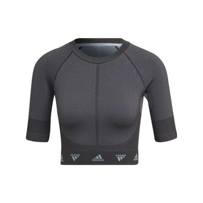 Wtr Aeroknit T Logo Saum Kurzarm Fitness Top Damen Oberteile Schwarz HD9566