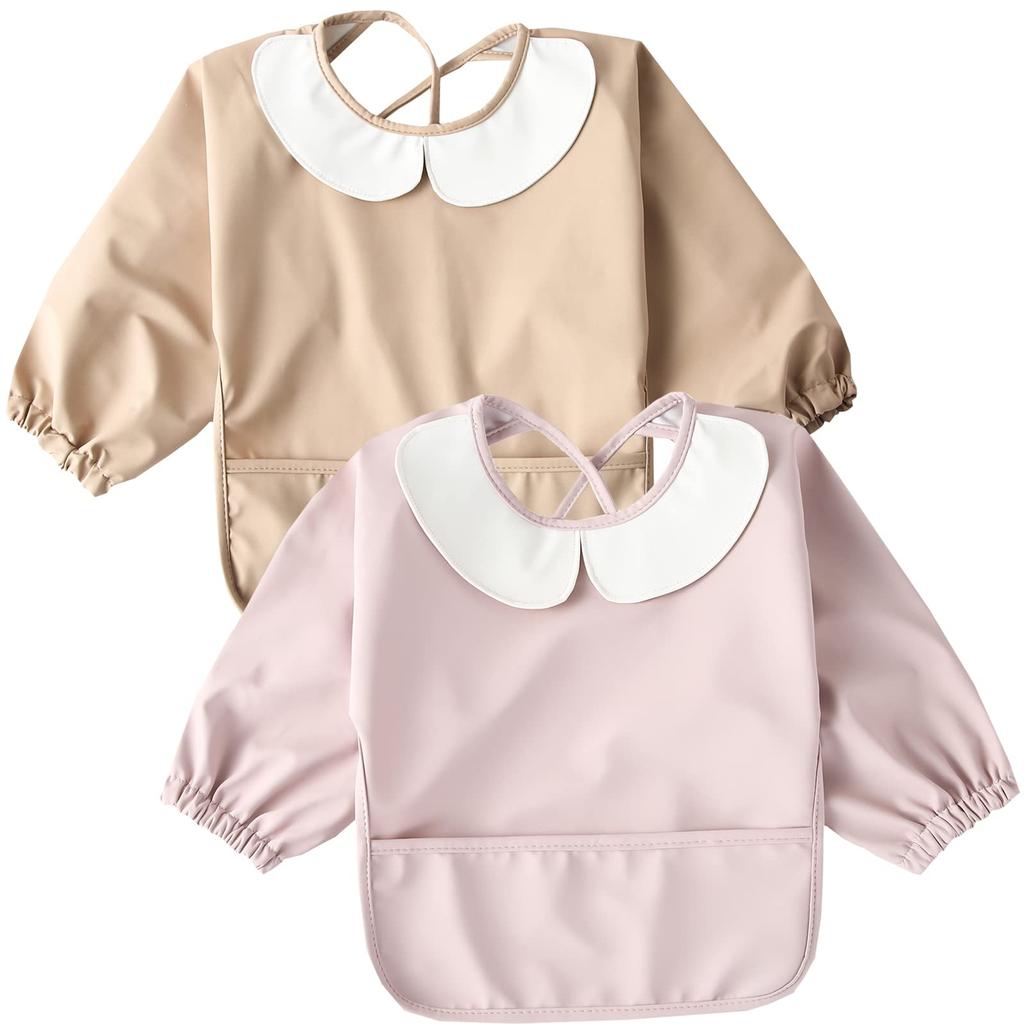 [Design] The large collar design is inspired by flower petals, and is elegant, stylish, and luxurious without being too flashy. It is water-repellent, so sauces, drinks, and food will not soak in. The long sleeves cover the arms well. The soft and durable fabric makes it comfortable for babies to use.