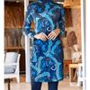 2-teiliger muslimischer Damen-Sitz Badeanzug mit bescheidenem Blätter-Schmetterlings-Blau-Druck, Badeanzug-Set mit vollständiger Bedeckung, Strandbekleidung, Burkini-Badeanzug-Set, mehrfarbig
