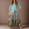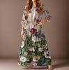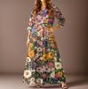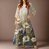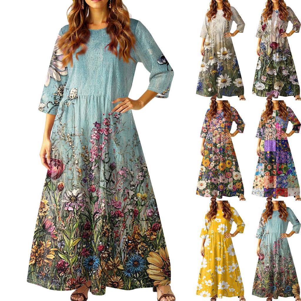 Damen Freizeitmode Blumenmuster Dreiviertelarm Langes Kleid mit Taschen