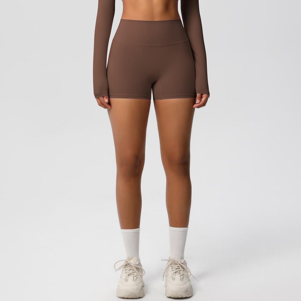 Solid color double-sided high-waisted tight-fitting hip-lifting yoga shorts, running fitness sports three-point pants for women