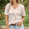 Damen T-Shirt Sommer V-Ausschnitt Kurzarm Oberteil Mode Federmuster 3D-Druck Lässig Täglich Damenbekleidung
