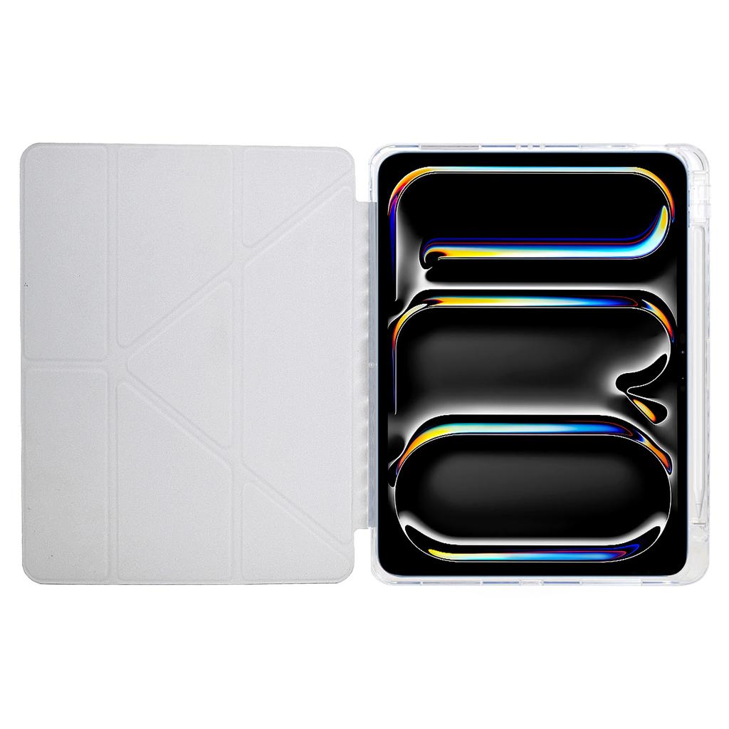 Für iPad Pro 11 (2024) Hülle Y-Faltständer Leder mit Pyramidenmuster + Klare Acryl-Tablet-Abdeckung mit Stifthalter